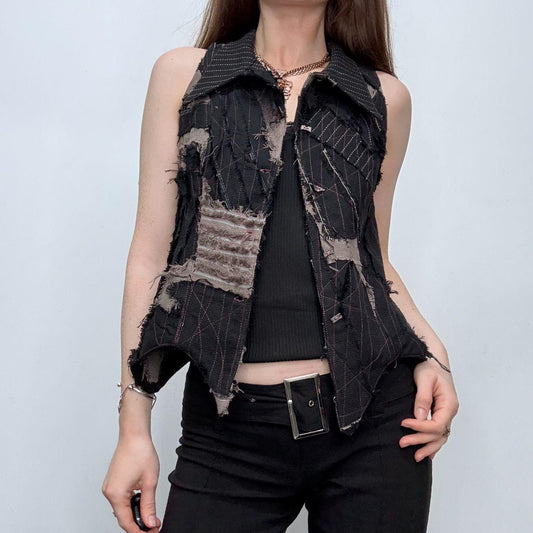 Pinstripe distressed patched waistcoat