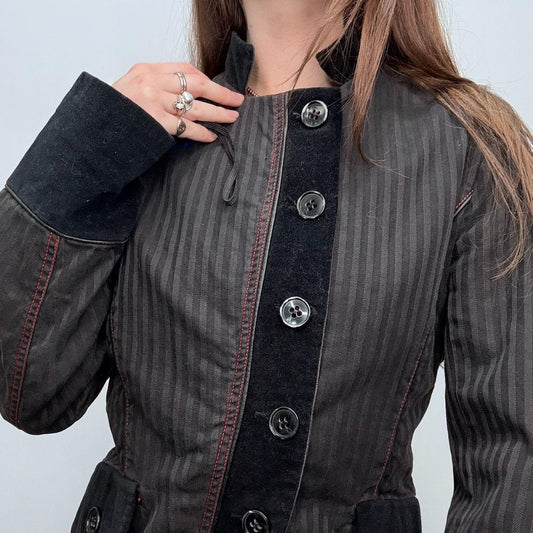 Sold outAsymmetric pinstripe flared jacket
