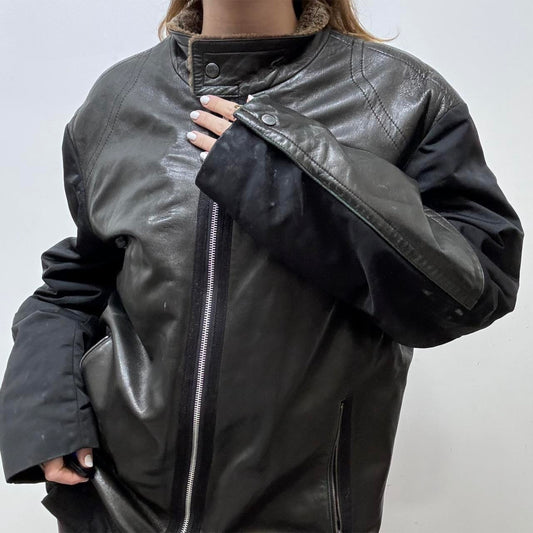 Oversized black leather Aviator jacket