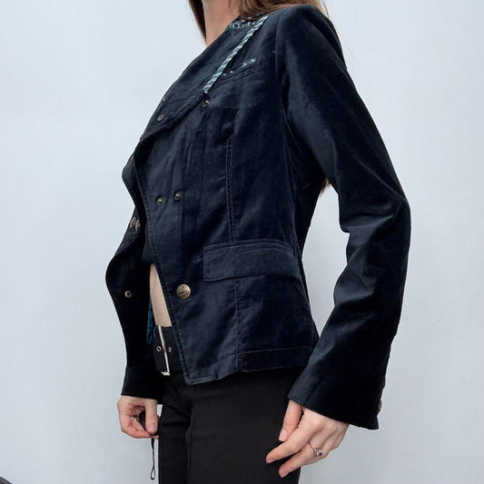 Navy flared velvet miltary jacket