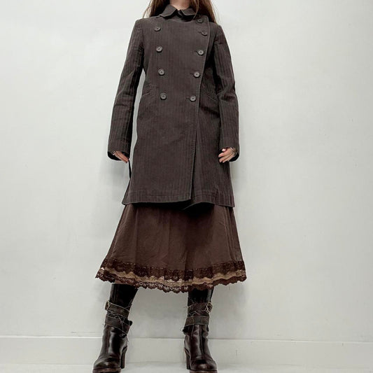 Sold outPinstripe brown pea coat trench