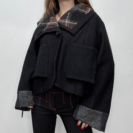 Black oversized wool tartan jacket