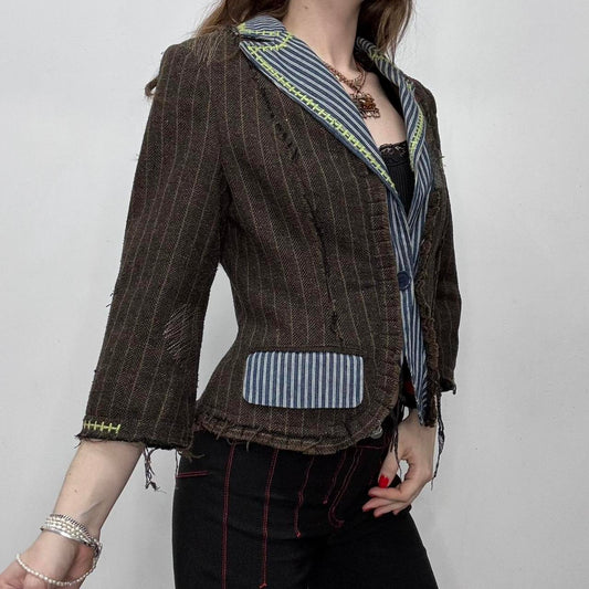 Brown pinstripe distressed layered jacket