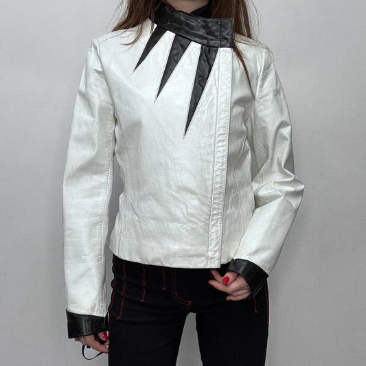 White leather vintage asymmetric jacket