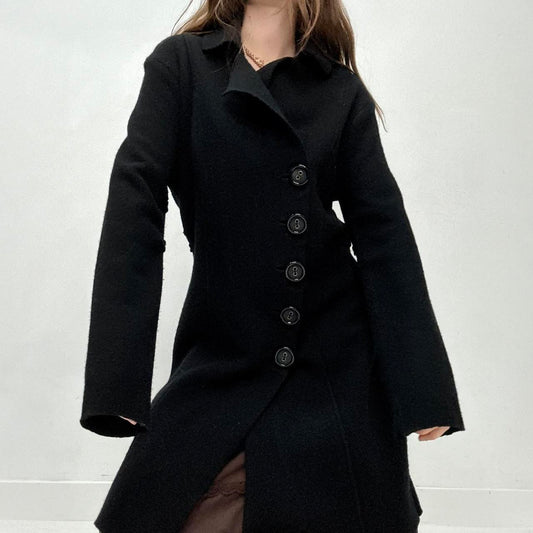 Black felted wool flared asymmetric pea coat
