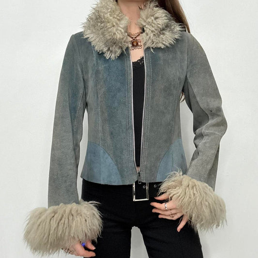 Suede embroidered fur boho jacket