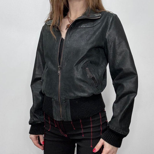 Black leather cropped bomber jacket