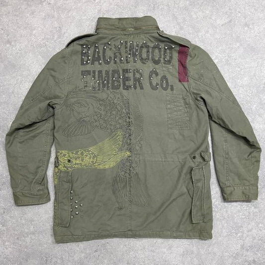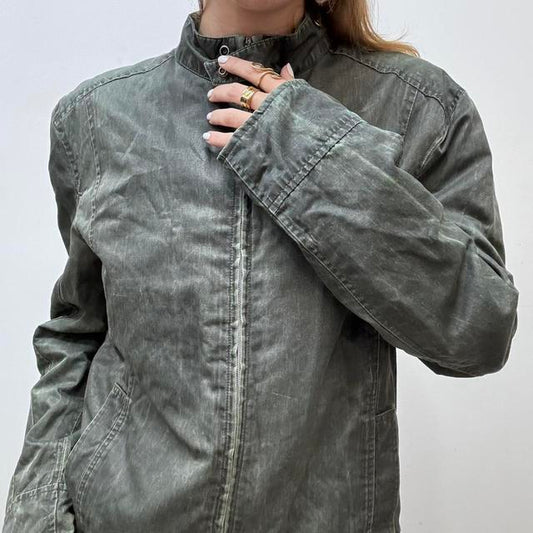 Khaki cargo distressed graphic jacket