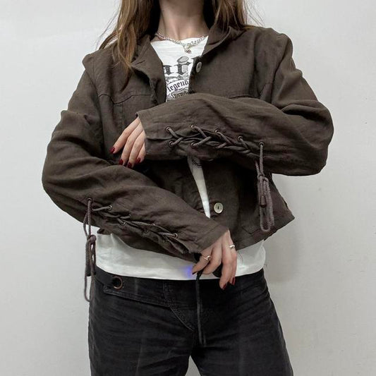Sold outBrown cropped hooded bomber jacket