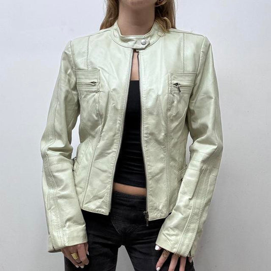 Cream leather biker jacket