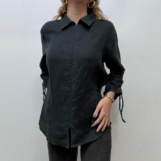Black linen utility jacket