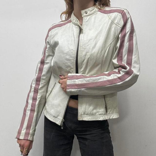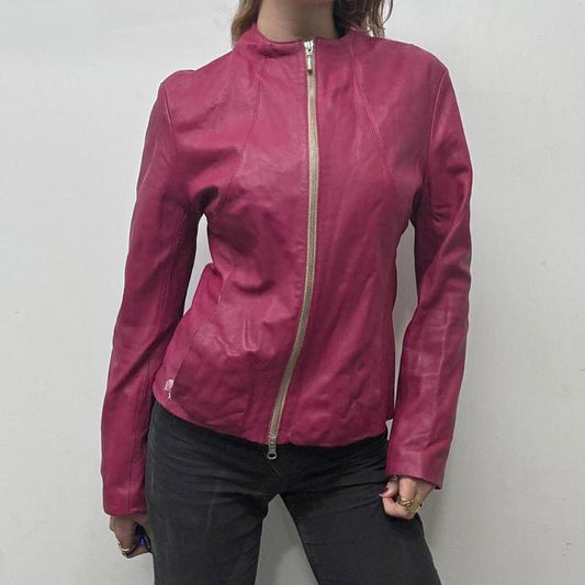 Fitted 90s pink leather jacket