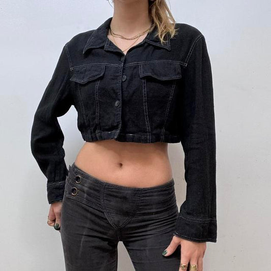 Sold outCropped black linen jacket
