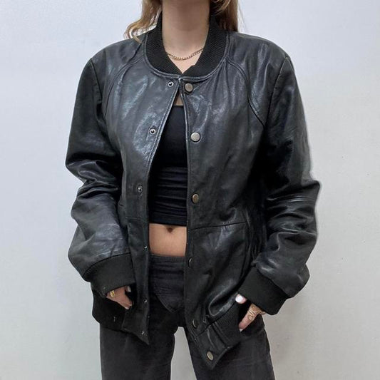 Black leather bomber jacket