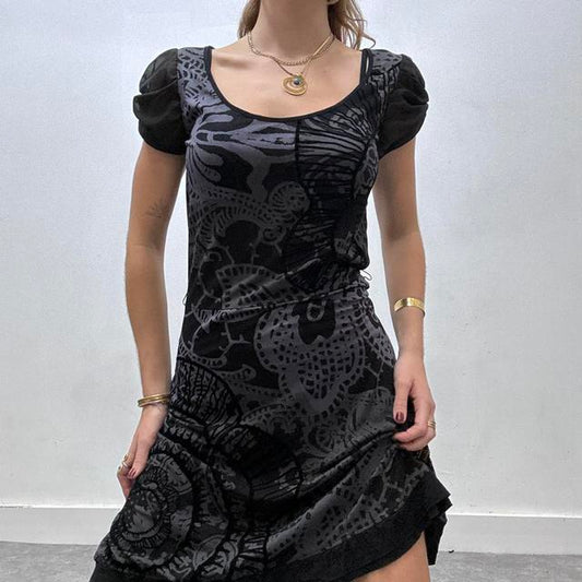 Black printed grunge graphic midi dress