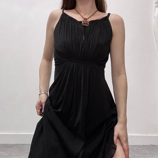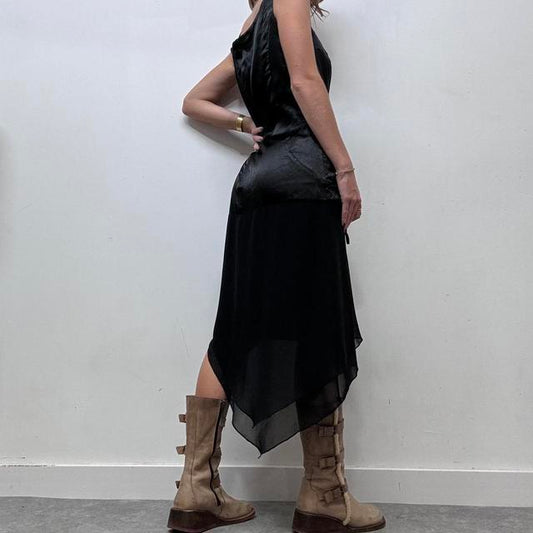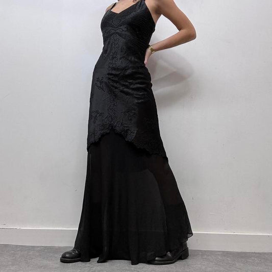 Sold outBlack satin layered maxi dress