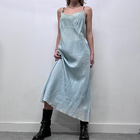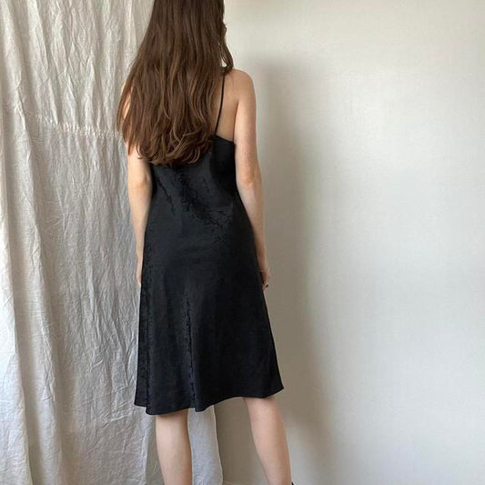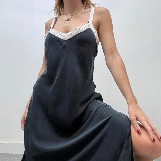 Black vintage slip dress - satin lace cami lingerie dress in black with sheer lace at bust