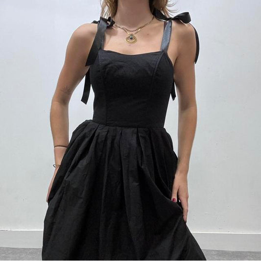 Black puff corset bow dress