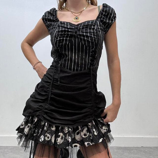 Black pinstripe gothic puff dress