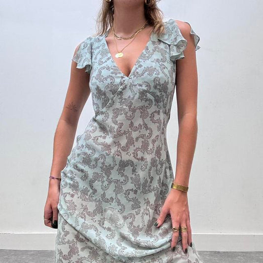 Blue paisley sheer midi dress