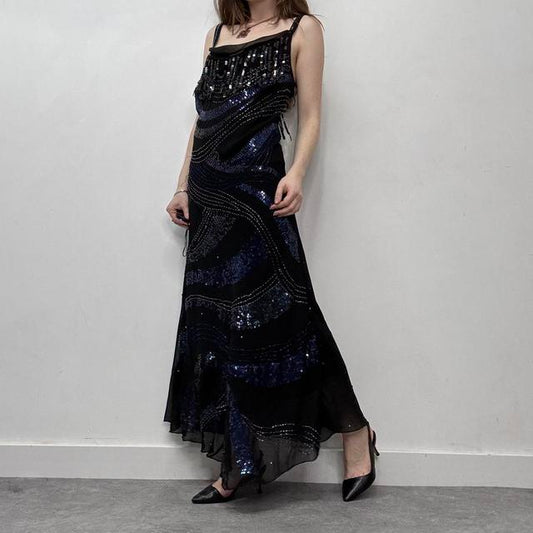 Black sequin cowl neck maxi dress