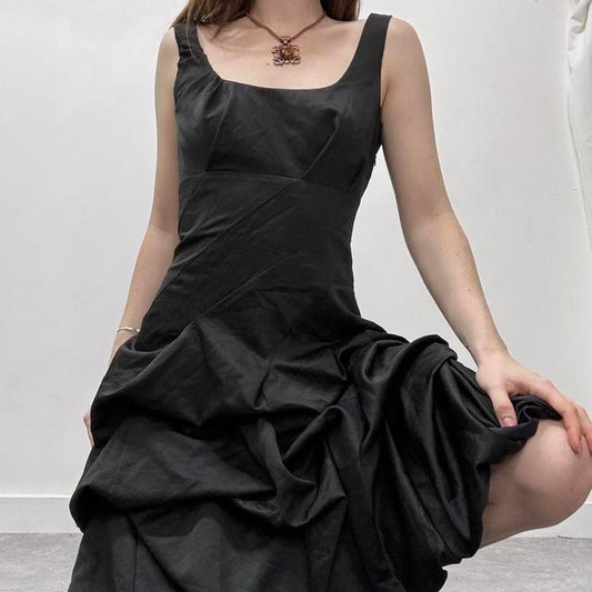 Black puff pleated midi dress