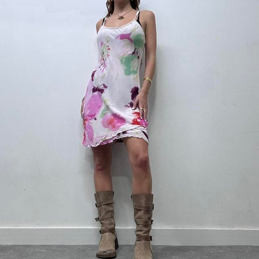 White floral bias mini dress
