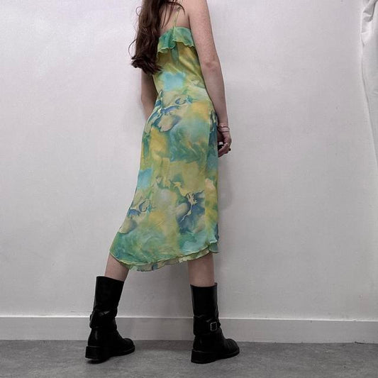 Watercolour floaty flatter green dress
