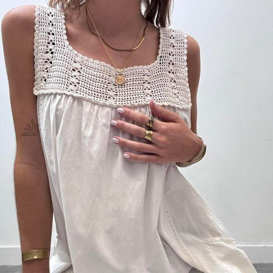 Vintage white cotton crochet midi dress