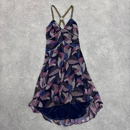 Graphic patterned flared silk flutter dress