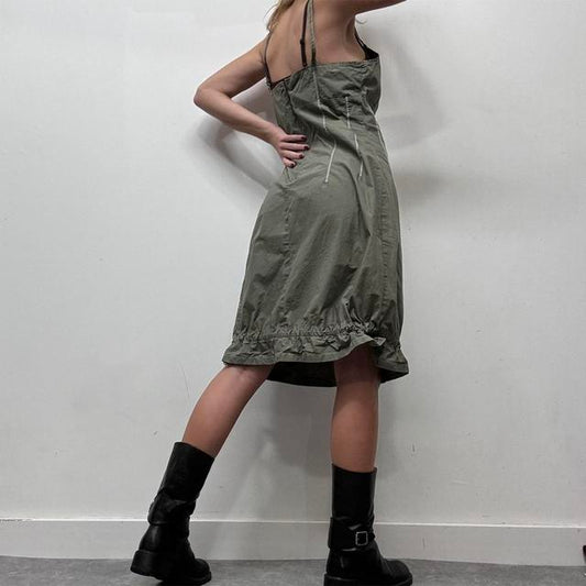 Khaki cargo aline midi dress