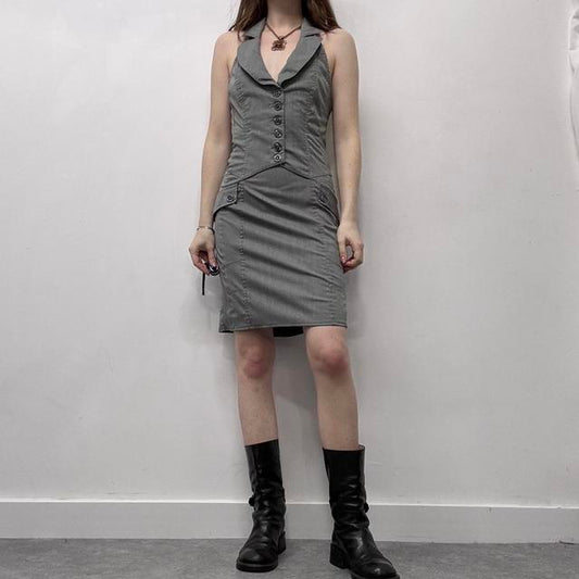 Grey officecore waistcoat halter dress