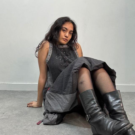 Grey studded pinstripe grunge dress