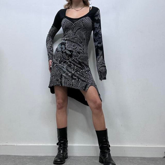 Grunge asymmetric graphic dress