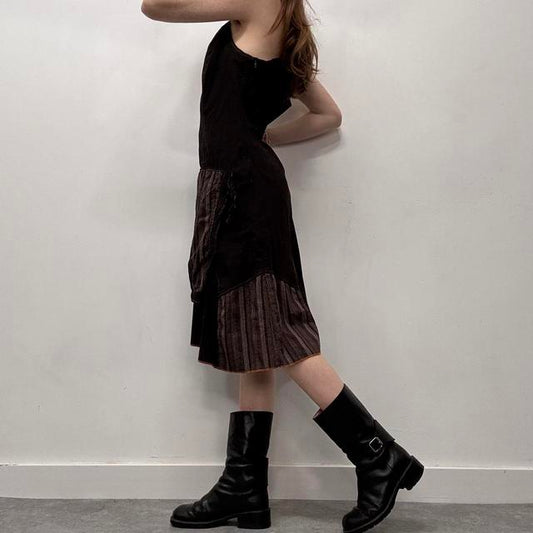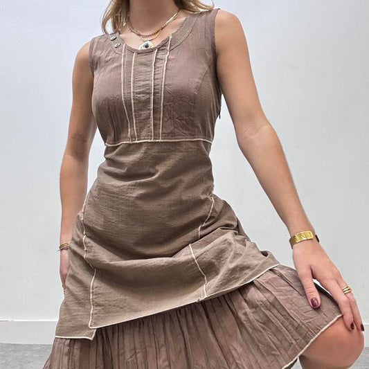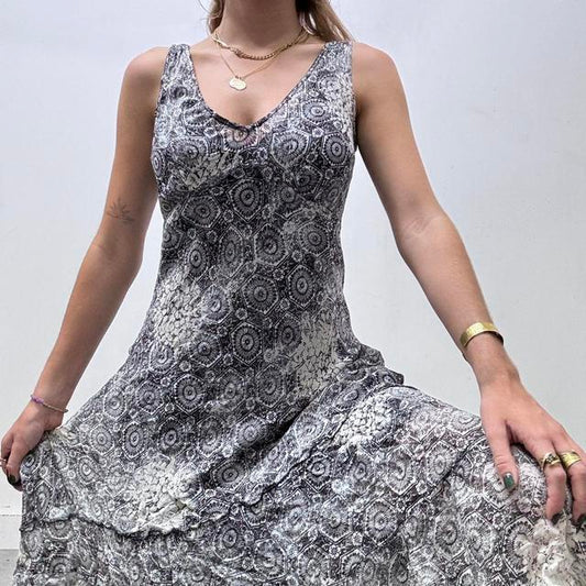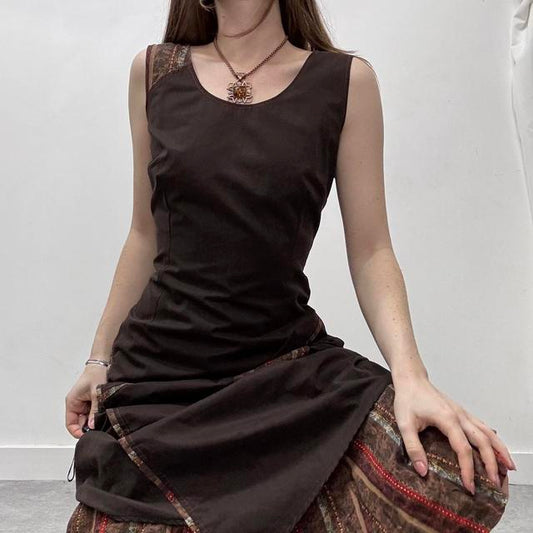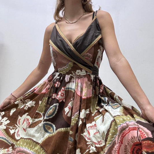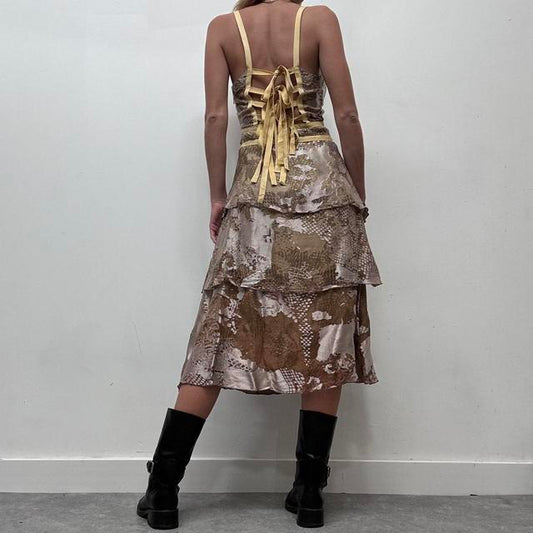 Distressed brown patterned bias cut 90s dress