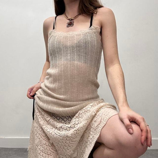 Cream knit mohair pointelle dress