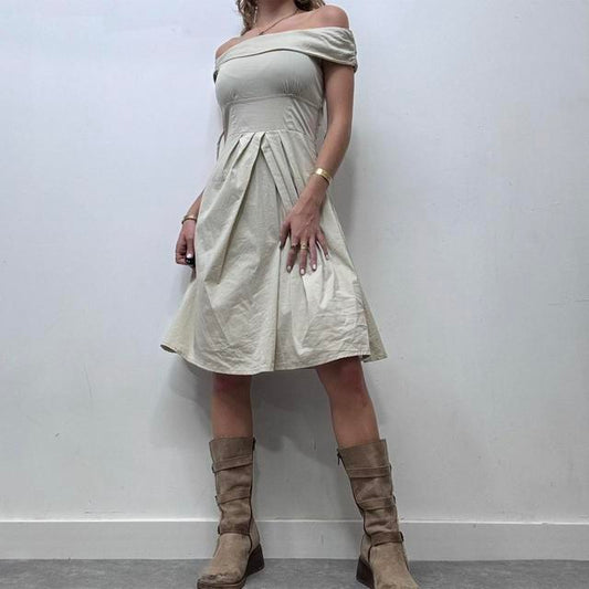 Cotton tan flare dress