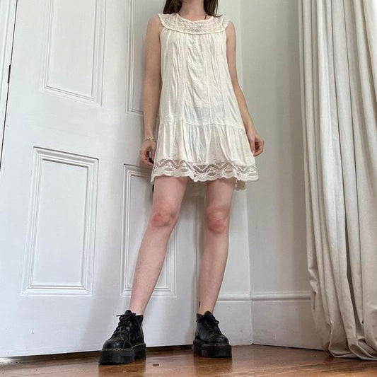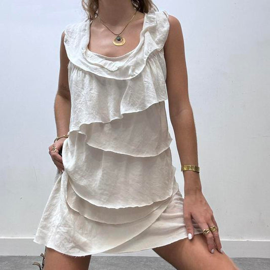 Cream layered ruffle mini dress