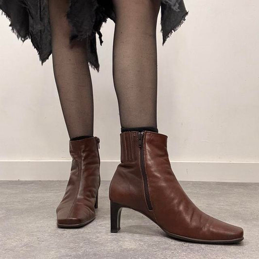 Brown leather heel ankle boots