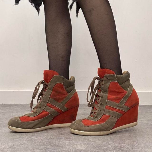 Chunky lace wedge trainers