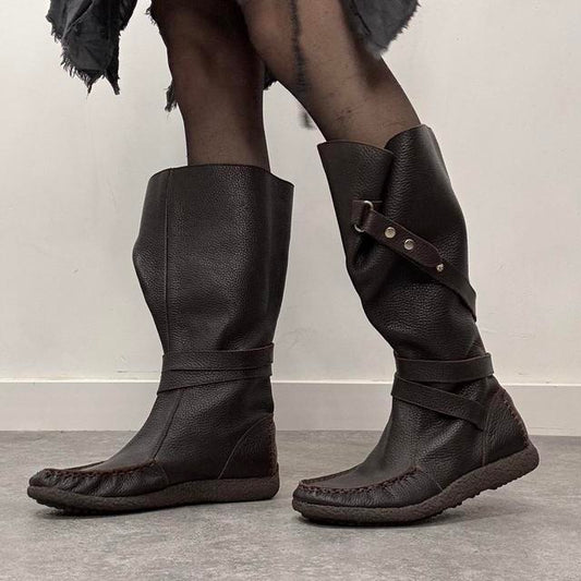Brown leather slouchy wrap cargo boots