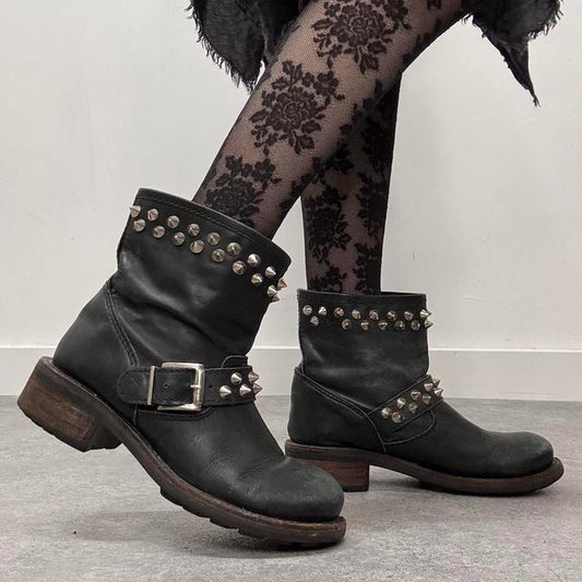 Black leather punk studded boots