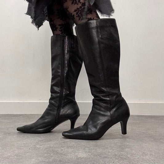 Black leather heel boots