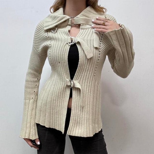 Ribbed knit flare cardigan