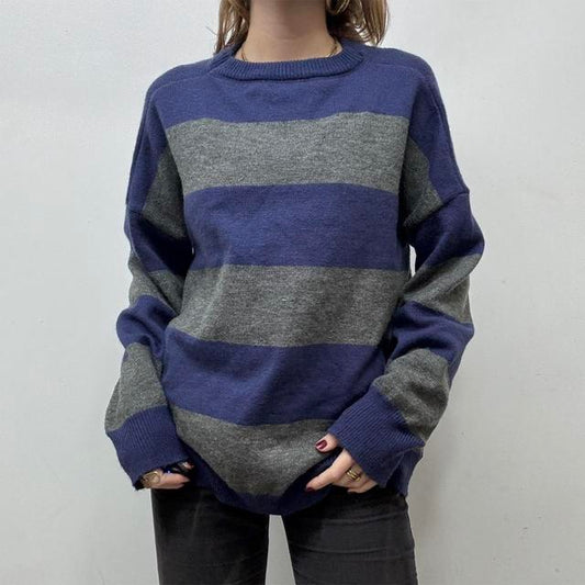 Oversized striped wool knit jumper