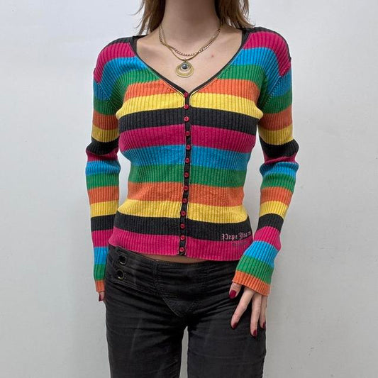 Rainbow ribbed button-up Cardigan