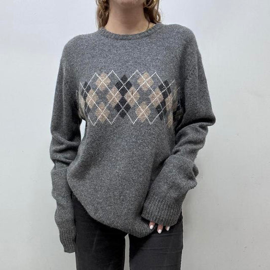 Wool knitted grey argyle jumper