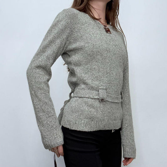 Grey wool knit belted jumper