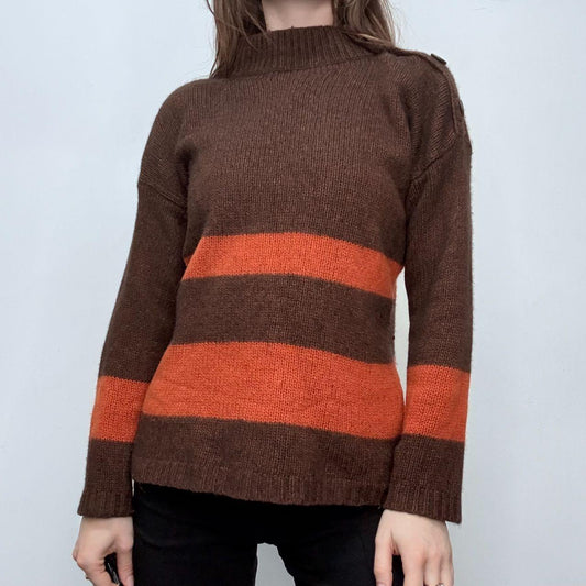 Brown cashmere stripe knit jumper