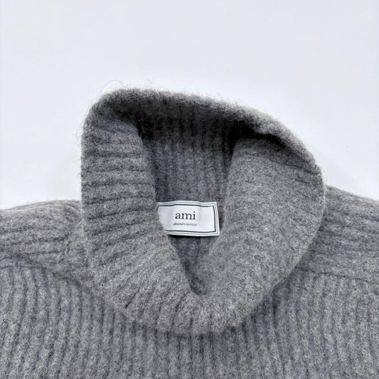 Grey chunky ribbed knit ami paris jumper